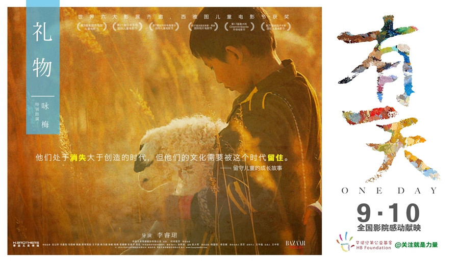 今天,9月10日,爱心公益电影《有一天》以全国统一5元公益票价感动献映。各位F请抽些时间走进电影院支持这部公益电影,支持这部关爱问题儿童的公益电影,支持这部历史900天、500人爱心接力完成的关爱问题儿童的公益电影。