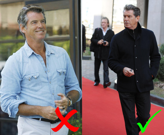 这是个茶壶lalala,非常圆润,衣服总穿出一种要炸开来的感觉,这样身材的F,的确要好好锻炼啦!穿衣技巧应学会:1、切莫着了条纹的道;2、领子才是“遮羞布”;3、深色恒久远,黑蓝永流传;4、中长的外套把肚子藏起来