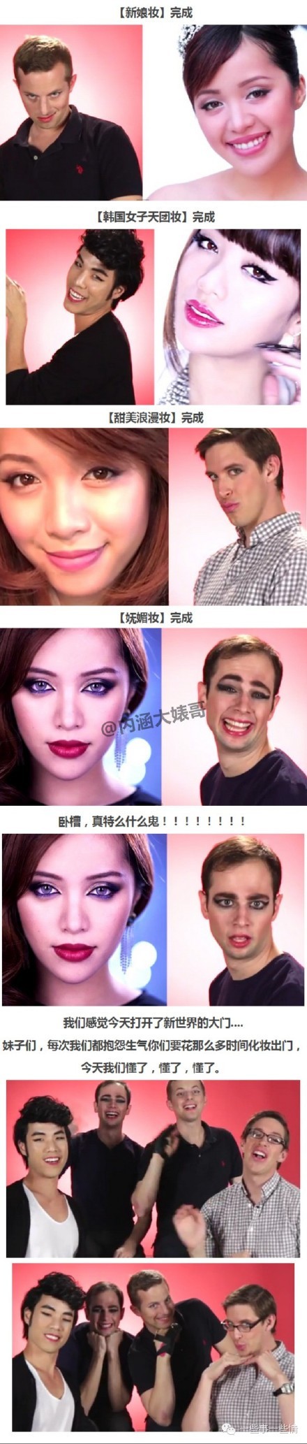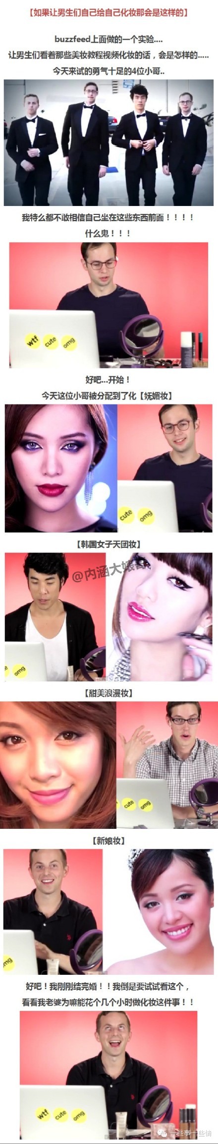 前几天看到一条很火的微博,话说国外网站buzzfeed做了个实验,让男生们看着美妆教程视频给自己化妆。